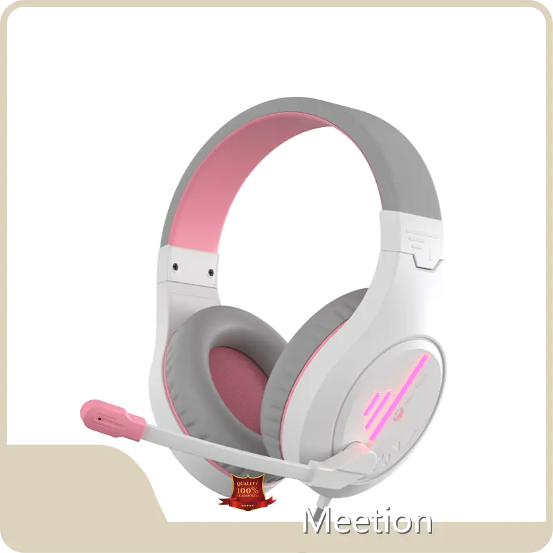Der „Brand Gaming Headset Factory Supplier“ bietet ein weiß-rosa Stereo-Gaming-Headset namens Meetion HP021 an, das leicht und ergonomisch für eine komfortable Nutzung gestaltet ist.